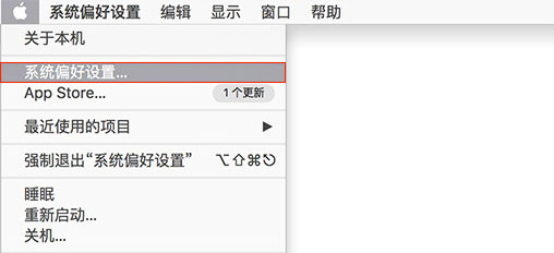 1. 单击最左上角的苹果图标, 在下拉菜单中点击 “ 系统偏好设置 ” 进入设置